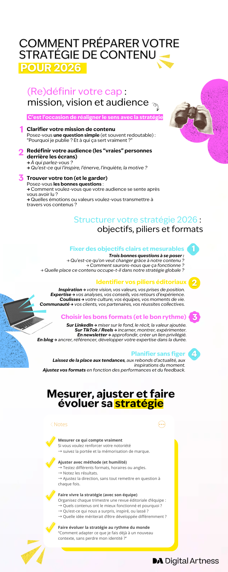 Et si vous avez besoin d’un accompagnement pour structurer ou réinventer votre stratégie de contenu, Digital Artness est là pour vous aider à trouver le ton juste. Celui qui combine stratégie et sincérité, créativité et performance pour commencer 2026 avec une stratégie claire, incarnée et différenciante.